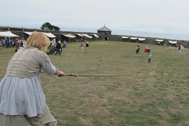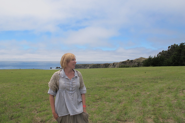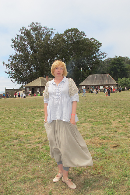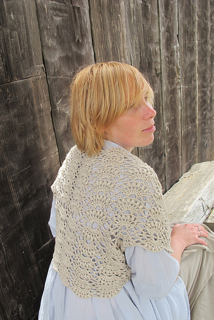 Некоторое время назад мне захотелось связать что-нибудь ажурно-рустикально-прекрасное из льна. Лен у меня семеновский, кажется, что-то типа Крестьянка или Селянка. Модэль непонятное болеро из японского журнала. Рассчитывать я посчитала ненужным, потому что все равно все безразмерное, связала первый раз в одну нитку, постирала, все превратилось в ажурную половую тряпку 60-го размера. Но раз мне уперлось, я связала эту же вещь еще раз, в 2 нитки и немного приложила ум к рассчетам. Что-то вроде получилось, в зеркале мне все нравилось. Выгуляла вещь на фольклорный фестиваль, выела душу мужу, чтобы он меня сфоткал, посмотрела на фотки, подумала, что ужас, и сплавила с глаз долой. Конкретно мне не нравится, что лен совсем непластичный, стоит колом, подмышками мнется. Ну вообще-то можно было это предвидеть с самого начала, но вот почему-то не подумалось. Стиль тоже как-то оказался не мой, хотя на картинках так красиво...